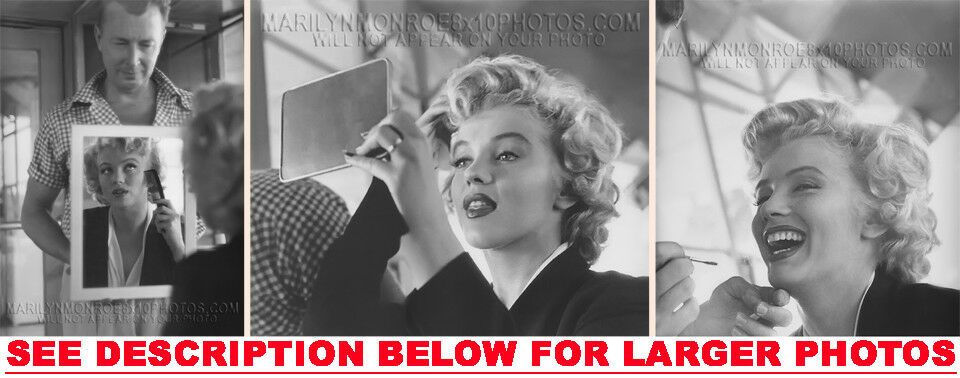 YOU ARE PURCHASING 3 CANDID & RARE MARILYN MONROE MAKEUP HELPER (3) 5X7 FINE ART PHOTOS The (3) 5X7 Candid & Fine Art Photos you will receive, (shown below) are from a Private Collection. COPYRIGHTS: (please see bottom of thispage) These Candid, One of a kind pictures are Professionally photo-printed utilizing the GICLEE printing process onto GALERIE SmoothGloss Archival & Acid-free High Resolution Photo-Lab quality paper. As well, we use only Giclee pressheated Archival Printing Inks. This is Kodak's most expensive Ink, which creates higher & more vivid quality Photos & longer lasting prints than any other Photographic Ink in the world!! This Ultra Premium Kodak Super Color/Photo Gloss Pigment Based Printing Ink also shields photos from the key factors that lead to fading such as light, air, pollution, moisture and heat. This is due to the Spectacularly Innovative "colorlast" technology applied to this KodakPIGMENTInk, which allows your Photos to virtually resist any picture fading for at least 100 years. Meaning, the vibrant colors in the Photos you see below will be the exact same vibrant colors your descendants will see when viewing your Photos 100 years from now! NOTE PLEASE** WE ARE ALWAYS LISTING DIFFERENT MARILYN MONROE PHOTOS & PHOTO CREATIONS. IFYOU WOULD LIKE TO BE NOTIFIED THE NEXT TIME WE LIST MORE UNIQUE AND DIFFERENT PHOTOS OF MARILYN MONROE PLEASE EMAIL US  5X7 PHOTO#1 5X7 PHOTO#2 5X7 PHOTO#3 CLICK HERE TO VIEW MORE MARILYN MONROE 5X7PHOTOS!
