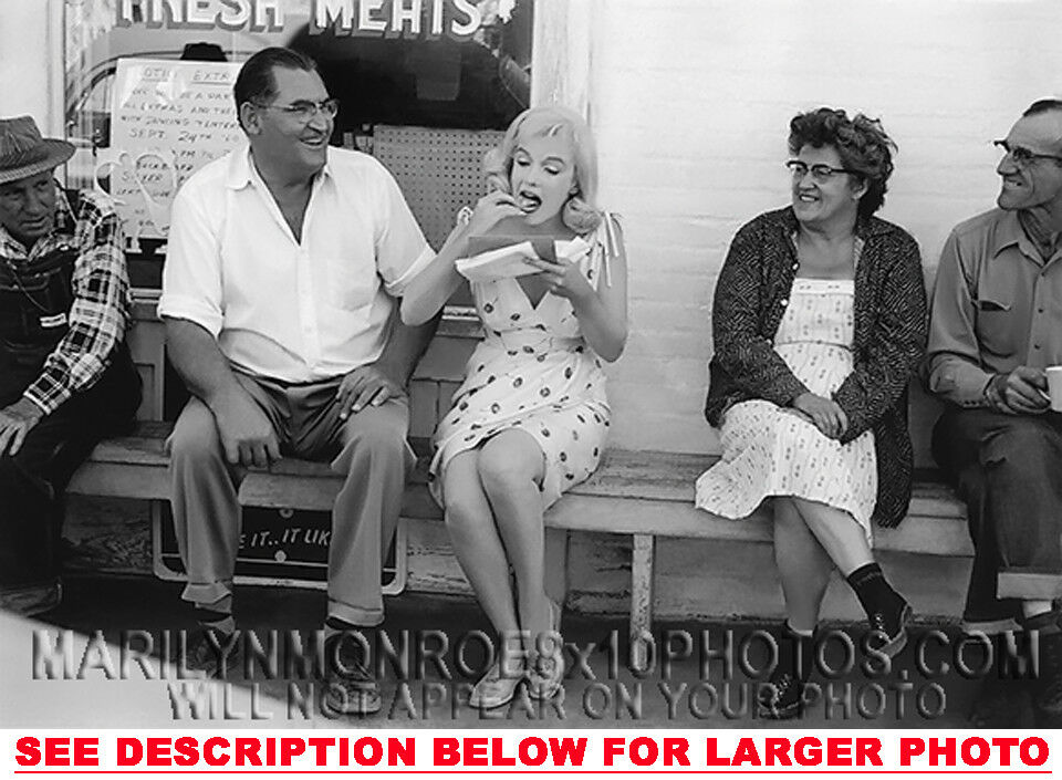 YOU ARE PURCHASING 1 CANDID & RARE MARILYN MONROE MISFITS EATING&READING (1) 5X7 FINE ART PHOTO The (1) 5X7 Candid & Fine Art Photo you will receive, (shown below) is from a Private Collection. COPYRIGHTS: (please see bottom of thispage) This Candid, One of a kind picture is Professionally photo-printed utilizing the GICLEE printing process onto GALERIE SmoothGloss Archival & Acid-free High Resolution Photo-Lab quality paper. As well, we use only Giclee pressheated Archival Printing Inks. This is Kodak's most expensive Ink, which creates higher & more vivid quality Photos & longer lasting prints than any other Photographic Ink in the world!! This Ultra Premium Kodak Super Color/Photo Gloss Pigment Based Printing Ink also shields photos from the key factors that lead to fading such as light, air, pollution, moisture and heat. This is due to the Spectacularly Innovative "colorlast" technology applied to this KodakPIGMENTInk, which allows your Photo to virtually resist any picture fading for at least 100 years. Meaning, the vibrant colors in the Photo you see below will be the exact same vibrant colors your descendants will see when viewing your Photo 100 years from now! NOTE PLEASE** WE ARE ALWAYS LISTING DIFFERENT MARILYN MONROE PHOTOS & PHOTO CREATIONS. IFYOU WOULD LIKE TO BE NOTIFIED THE NEXT TIME WE LIST MORE UNIQUE AND DIFFERENT PHOTOS OF MARILYN MONROE PLEASE EMAIL US  5X7 PHOTO#1 CLICK HERE TO VIEW MORE MARILYN MONROE 5X7PHOTOS!