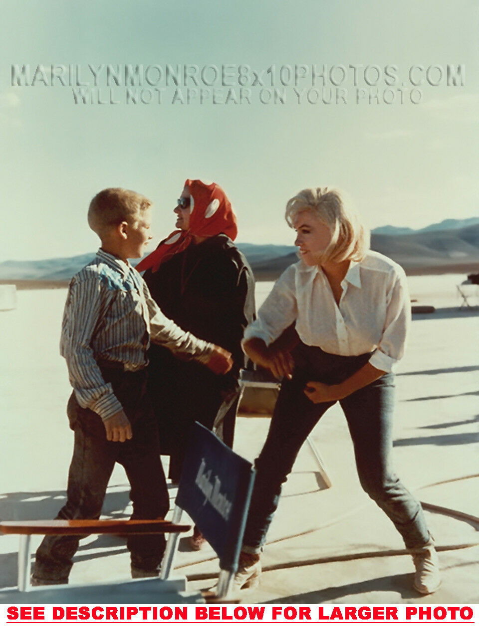 YOU ARE PURCHASING 1 CANDID & RARE MARILYN MONROE MISFITS PLAYING ONSET (1) 8x10 FINE ART PHOTO The (1) 8x10 Candid & Fine Art Photo you will receive, (shown below) is from a Private Collection. COPYRIGHTS: (please see bottom of thispage) This Candid, One of a kind picture is Professionally photo-printed utilizing the GICLEE printing process onto GALERIE SmoothGloss Archival & Acid-free High Resolution Photo-Lab quality paper. As well, we use only Giclee pressheated Archival Printing Inks. This is Kodak's most expensive Ink, which creates higher & more vivid quality Photos & longer lasting prints than any other Photographic Ink in the world!! This Ultra Premium Kodak Super Color/Photo Gloss Pigment Based Printing Ink also shields photos from the key factors that lead to fading such as light, air, pollution, moisture and heat. This is due to the Spectacularly Innovative "colorlast" technology applied to this KodakPIGMENTInk, which allows your Photo to virtually resist any picture fading for at least 100 years. Meaning, the vibrant colors in the Photo you see below will be the exact same vibrant colors your descendants will see when viewing your Photo 100 years from now! NOTE PLEASE** WE ARE ALWAYS LISTING DIFFERENT MARILYN MONROE PHOTOS & PHOTO CREATIONS. IFYOU WOULD LIKE TO BE NOTIFIED THE NEXT TIME WE LIST MORE UNIQUE AND DIFFERENT PHOTOS OF MARILYN MONROE PLEASE EMAIL US  8x10 PHOTO#1 CLICK HERE TO VIEW MORE MARILYN MONROE 8x10PHOTOS!