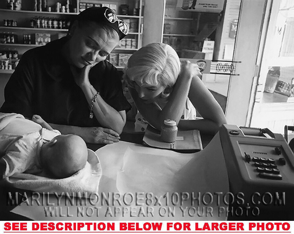 YOU ARE PURCHASING 1 CANDID & RARE MARILYN MONROE MISFITS WATCHING BABY (1) 8x10 FINE ART PHOTO The (1) 8x10 Candid & Fine Art Photo you will receive, (shown below) is from a Private Collection. COPYRIGHTS: (please see bottom of thispage) This Candid, One of a kind picture is Professionally photo-printed utilizing the GICLEE printing process onto GALERIE SmoothGloss Archival & Acid-free High Resolution Photo-Lab quality paper. As well, we use only Giclee pressheated Archival Printing Inks. This is Kodak's most expensive Ink, which creates higher & more vivid quality Photos & longer lasting prints than any other Photographic Ink in the world!! This Ultra Premium Kodak Super Color/Photo Gloss Pigment Based Printing Ink also shields photos from the key factors that lead to fading such as light, air, pollution, moisture and heat. This is due to the Spectacularly Innovative "colorlast" technology applied to this KodakPIGMENTInk, which allows your Photo to virtually resist any picture fading for at least 100 years. Meaning, the vibrant colors in the Photo you see below will be the exact same vibrant colors your descendants will see when viewing your Photo 100 years from now! NOTE PLEASE** WE ARE ALWAYS LISTING DIFFERENT MARILYN MONROE PHOTOS & PHOTO CREATIONS. IFYOU WOULD LIKE TO BE NOTIFIED THE NEXT TIME WE LIST MORE UNIQUE AND DIFFERENT PHOTOS OF MARILYN MONROE PLEASE EMAIL US  8x10 PHOTO#1 CLICK HERE TO VIEW MORE MARILYN MONROE 8x10PHOTOS!