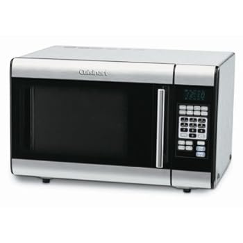 * 1.0-cubic-foot * 1000 watt * Stainless steel control panel and door with embossed Cuisinart logo and dark tinted glass window * Stylish chrome handle * Stainless steel interior absorbs no odors and is easy to sanitize * Rotating 12 inch glass tray * Touchpad controls with LCD * Two convenient defrost functions to defrost food by weight or time * Eight preset options with serving-size options for each (total 25): Popcorn, * Beverage, Rice, Reheat, Fresh Vegetables, Frozen Vegetables, Baked Potatoes, and Bacon * Two-stage cooking operation: Allows microwave to be set so that first stage of operation (such as 15 minutes on defrost), is automatically followed by a second stage (such as cooking for 8 minutes)