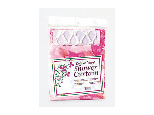 One decorative shower curtain with twelve extra strength hooks. Beautiful Blue and white flower print design. Easy to clean - simply swipe surface using warm water to clean. No laundering or dry cleaning. Comes in bag package with UPC. Measures 72" x 72". Colors: white,blue; Materials: plasticIf there is a color/size/type option, the option closest to the image will be shipped (Or you may receive a random color/size/type).