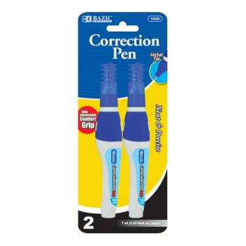 BAZIC 7ml Metal Tip Correction Pen w/ Cushion Grip (2/Pack) - Dries quickly. - It provides neat corrections with no messy brushes or spilled bottles. - Ideal for correcting letters & numbers. - Soft and squeezable grip provide comfort and maximum fluid control. WARNING: Intentional misuse by deliberately concentrating and inhaling the contents can be harmful or fatal. Flamable, keep out reach of children. - Case pack 24 / 144."" Case Pack 144 Please note: If there is a color/size/type option, the option closest to the image will be shipped (Or you may receive a random color/size/type).