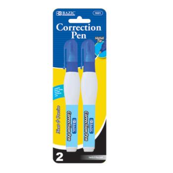 BAZIC 9 ml Metal Tip Correction Pen (2/Pack). Dries Quickly. It provides neat corrections with no messy brushes or spilled bottles. Ideal for correcting letters and numbers. Warning: Intentional misuse by deliberately concentrating and inhaling the contents can be harmful or fatal fammable. Keep out reach of children. Improved barrel design, for more controlled flow. Contents of 9 ml (0.31 fl oz.) each."" Case Pack 144 Please note: If there is a color/size/type option, the option closest to the image will be shipped (Or you may receive a random color/size/type).
