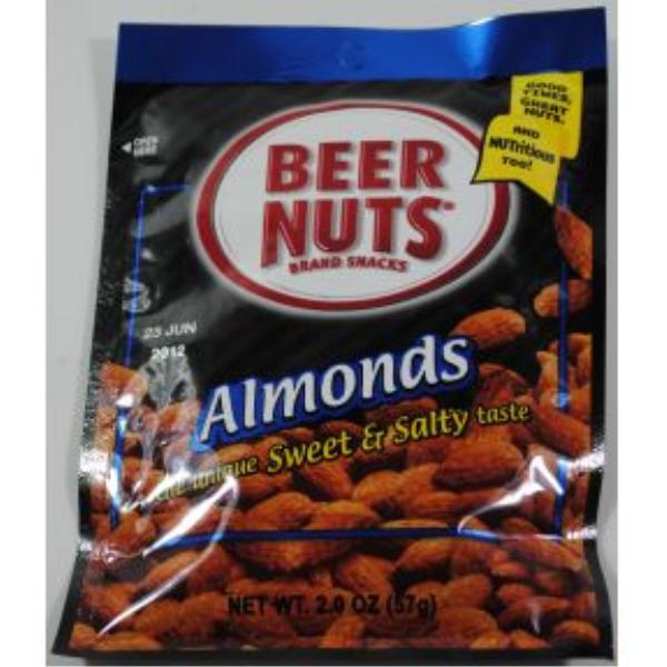 Beer Nuts® Almonds - 2 oz package. Unique sweet & salty taste. All natural. Low sodium. Cholesterol free. Case Pack 24 Please note: If there is a color/size/type option, the option closest to the image will be shipped (Or you may receive a random color/size/type).