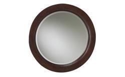Lincoln Park 36" Round beveled edge Mirror is made from Poplar in a dark Cherry finish. Detailed molding on the frame accents the beveled round mirror.