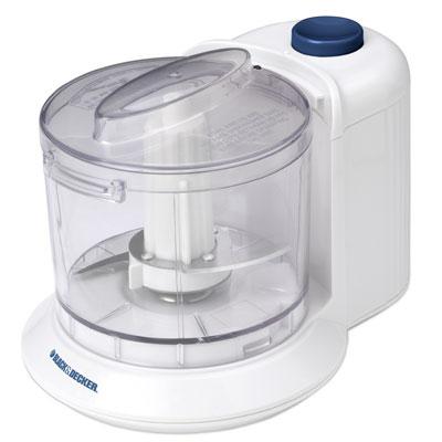 Black and Decker One Touch Chopper. A dynamic duo. Durable 1 and a half cup bowl and stay sharp blade are unbeatable for chopping or mincing your favorite ingredients for salsas salads and so much more. One touch button with pulse for instant control coarse chop to fine mince. Stay sharp bi level curved blade for precision cutting. Safety lock lid for secure operation. 1 and a half cup 360 ml bowl just the right size for prepping herbs nuts and more. Dishwasher safe bowl blade and lid for easy clean up.