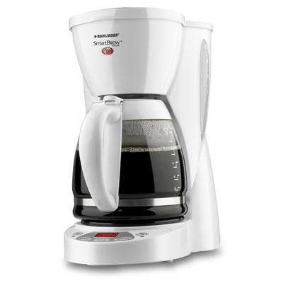 Black and Decker DCM2500 SmartBrew Plus Coffeemaker with White finish.Take the hassle out of your morning routine with the intelligent coffeemaker that offers simplicity convenience and cleaning ease all in one. The SmartBrew Plus coffeemaker includes handy features like the Sneak. A Cup system and 2 hour auto shutoff plus the cleaning convenience of a dishwasher safe removable filter basket and an easy clean surface control panel. Programmable Clock. Auto Brew. Optimal Brewing Temperature. Perfect Pour Carafe.QuickTouch Programming. Sneak A Cup Feature. 2 hour Auto Shutoff. Easy Clean Surface. Nonstick Keep Hot Carafe Plate. Removable Filter Basket. Easy View Water Window. Duralife Carafe.