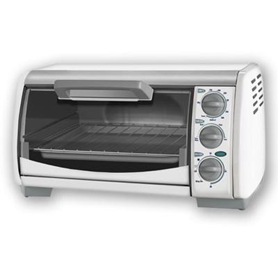Black and Decker Toast R Oven Classic Countertop with White finish. Breakfast lunch dinner or snacks this versatile toaster oven toasts cooks broils and reheats a variety of foods. Enjoy your favorite muffins individual pizzas casseroles or small chicken parts cooked to perfection right on your countertop. Compact size Broiler and bake pan included Temperature allows to bake toast brown and reheat a variety of foods.Precise broiling and toasting. Great for cooking your favorite crispy crust pizza Signal Bell lets you know when toasting is done.