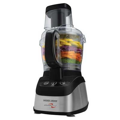 Black and Decker PowerPro 2 in 1 Food Processor and Blender.Power that gets the job done. From food processing to blending the 600 watt motor lets you slice chop shred grate puree and blend all your foods with ease. Do more with the 10cup capacity workbowl and the 6 cup blending jar as you prepare delicious meals and savory drinks. Stainless Steel Slice and Shredder Disk Powerful 600 Watt Motor Stainless Steel Chopping Blade Dough Blade 2 Speeds Plus Pulse Wide Mouth Feed Chute Food Chute With Pusher Non Skid Suction Feet Storage Lid Safety Interlock System Cord Wrap Dishwasher Safe Parts 10 Cup 2365 ml Workbowl 6 up 1419 ml Blender Jar Smooth Control Panel.