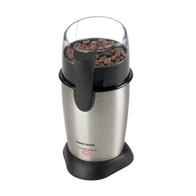 Black and Decker Stainless Steel Coffee Bean Grinder. Easy touch pulse control quickly custom grinds your favorite coffee beans from coarse to fine. Precision stainless steel blades for consistent performance. Easy touch pulse control grinds from coarse to fine in seconds. Great for coffee beans and nuts. Precision stainless steel blades for even grinding. Built-in cord storage. Only operates with the lid in place for safety. Contemporary design for todays kitchen.