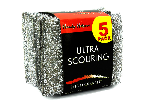This set of 5 ultra scouring pads are great for tough jobs in the kitchen. Will help you clean up any stuck-on foods. Great for scrubbing the stove too! Item comes carded and each pad is 4 3/4" x 3 1/2". Colors: silver; Materials: nylonfoamaluminumIf there is a color/size/type option the option closest to the image will be shipped (Or you may receive a random color/size/type).