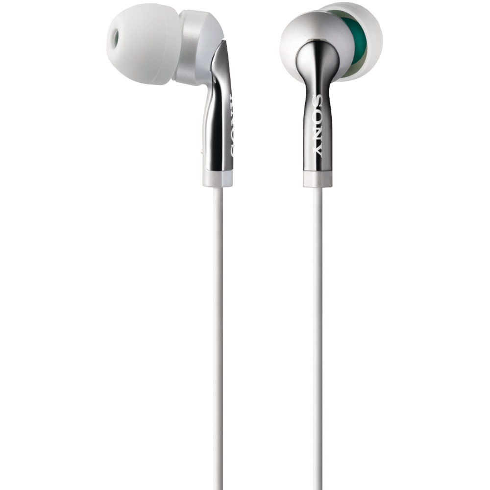 SONY MDREX57LP/WHI PREMIUM EX EARBUDS (WHITE) IMPROVED COMFORT WITH A SUPER-SLIM HOUSING & ANGLED EARBUD POSITION; 9MM EX DRIVERS DELIVER DETAILED & RICH SOUND;REPRODUCTION WITH DEEP BASS; ROBUST SOUND ACHIEVED BY USE OF HIGH-POWER;NEODYMIUM MAGNETS; CORD ADJUSTER FOR CORD MANAGEMENT; 3.9-FT NECK-CHAIN TYPE CORD; INCLUDES 3 SIZES OF EARBUDS (S, M, L) & CARRYING POUCH; WHITE