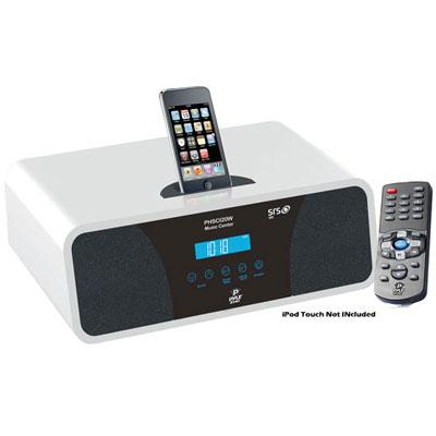 200 Watts High-Performance 2.1 Channel AM/FM Clock Radio Speaker With IPod / Iphone Docking Station(Black) Compatibility: iPod Mini 1G; iPod Nano 1G/2G/ /3G/4G/5G/iPod 3G/4G/5G/5.5G/6G/ iPod Touch(Generation 1 & Generation 2 ) iPhone Aux Input Jack Allows Connection of Other Audio Devices, Such As MP3 and CD Players, Desktop Computers, Satellite Radio and Laptops Includes AM/FM Radio, Clock, Alarm, And RF Remote With Full iPod Navigation Radio Memory Station: AM 9 Station / FM 9 Stations sleep timer 5MIN/15MIN/30MIN Alarm Allows One To Wake Up To An iPhone, iPod, AM/FM Radio, Or Buzzer Fully Function Remote Control LCD Display Equalizer Function Control Automatic Gain Control SRS-3D Level Control Color: Black Dimensions: 9.45" D 14.4 W'' 4.88'' H Weight: 8 LBS; Total Power Output: 200 Watts Power Source: 18V , 1.6A 110V Sold as: Unit. White.