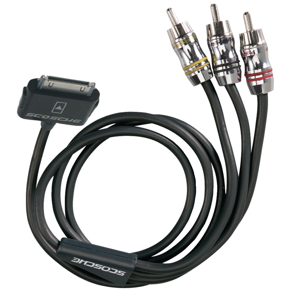 SCOSCHE IPAV IPOD & IPHONE SHOWTIME A/V CABLE, 6 FT PLAY PICTURES OR MOVIES FROM IPOD & IPHONE ON HOME, CAR OR PORTABLE ENTERTAINMENT SYSTEM; CABLE CONNECTS TO RCA AUDIO/ VIDEO INPUTS; EASY PLUG & PLAY INSTALLATION; TAPERED METAL RCA BARRELS FOR SUPERIOR CONNECTION WITH MINIMAL SIGNAL LOSS; 6 FT