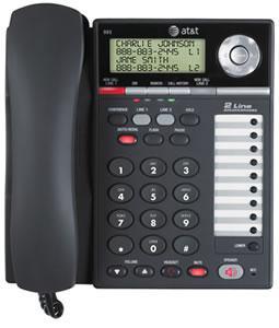 - AT&T 2-Line corded speakerphone - Caller ID, call waiting caller ID- 99# Caller ID memory- 100# Phonebook- 18# Speed dial- 4-Line backlit LCD- Speakerphone- Switchable data port- Message waiting/new call indicators- 3-Party conferencing- Display dial- D