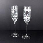 Celebrate your finest moment with this set of elegant " Bride" and " Groom" rhinestone champagne flutes.