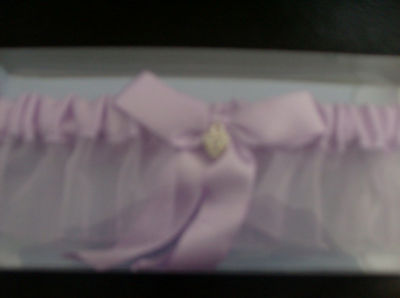 lavender satin garters with beautiful bow w/ hanging silver heart w/ rhinestone