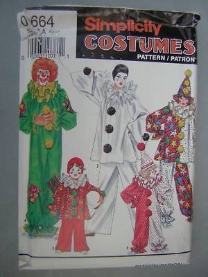Simplicity 0664 Clown Costume Pattern Boys Girls Adult