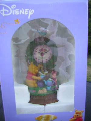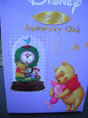 You are bidding on a brand new mint Disney Timeless Classic Winnie The Pooh and Friends Anniversary Clock. Detailed Resin Sculpt, Glass Dome, 9" high, Dual Pendulum, Precision Quartz Movement. Uses 1 "AA" BAttery ( not included ). This is a great addition to any Winnie The Pooh Collection or to give as a gift to someone special. The box is also in mint condition. I ship to all International locations. All my items are from a smoke free home. I also combine shipping on all items. Please check my Ebay Store for more great items. On Oct-16-10 at 16:57:17 PDT, seller added the following information: