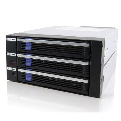 3 Hot Swap SATA I/II HDD in 2 X 5.25 Drive Bay Aluminum Rack W/ Swappable Fan Black