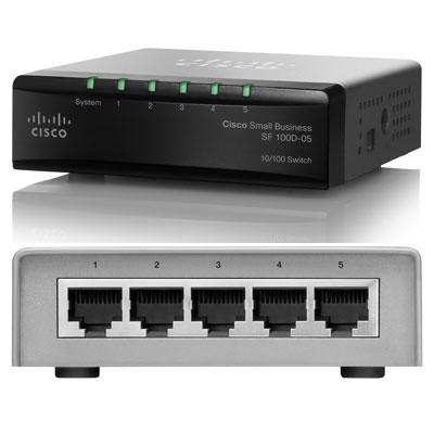SF 100D-05 5-port 10/100 desktop switch. The Cisco SF 100D-05 5-Port 10/100 Switch, a Cisco Small Business Unmanaged Switch, offers the performance and ease of use needed to connect small businesses. The switch works right out of the box and does not require any management or configuration. The Cisco SF 100D-05 is protected by a limited lifetime warranty.