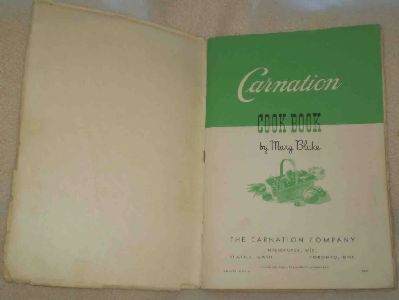 | Up for your consideration Carnation Cook Book by Mary Blake copyright 1941, 93 pages packed with timeless priceless information in rare very good condition only minor cover and edge wear with dog ear fold on back, inside is clean, binding tight, no markings or stains with one of kind recipes too many to name. Also rare menus for parties, weddings, holidays, child and invalid feedings, international dishes, cooking hints and much more. Measure 9 1/4" x 6 1/4". The best description are the pictures, as included are some of the contents and condition. Please look at all the pictures for more details.