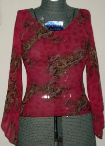 Up for your consideration a new without tag sexy sheer georgette paisley fuchia dress top size small by True Light. This top will fit junior size small or misses size 2-4, bust size 32a or 32b. It measures 14" across bust, 17" across shoulders neck line, 17" from arm pit to pit, 20" from top to bottom and the sexy split sleeves are 24" long at the longest point and has unique kimono open design to allow the arms to show. Please look at all the pictures for more details.
