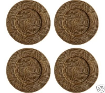A honey brown finish warms this handcrafted rattan charger-platter with a fine, tight weave for sturdy serving.