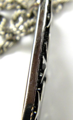 Length of Pendant : 1 1/2 inches Width of Pendant : 1 inch Pendant Thickness : 1/8" ChainStyle : Rope 22 inches long
