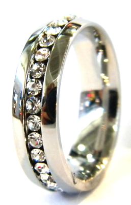 Polished Eterinity Stainless Steel Ring with CZ Stones. New Womens Ring. Goes Great With Any wardrobe,Great eye catcher.