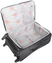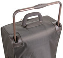 The trolley system has a push button locking handle and is constructed from a single piece of aluminum and runs down the sides of the bag, leaving the bed of the case flat and crease free