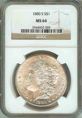 1880-S Morgan US 90% Silver Dollar $1 BU Uncirculated Certified Graded NGC MS64