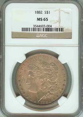 1882-P Morgan US Silver Dollar $1 BU Uncirculated Monster Rainbow Toned NGC MS65