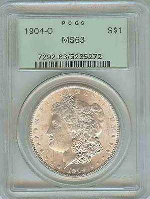 1904-O Morgan US 90% Silver Dollar $1 BU Uncirculated Certified Graded PCGS MS63