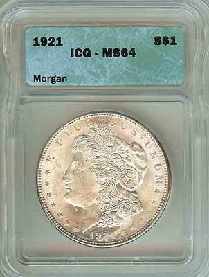 1921-P Morgan US 90% Silver Dollar $1 BU Uncirculated Certified Graded ICG MS64