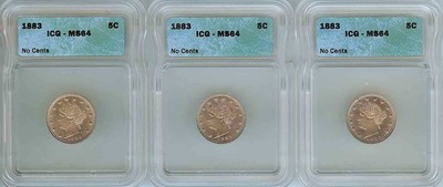 1883 Liberty V Nickel 5c No Cents Uncirculated Unc BU Certified Graded ICG MS64