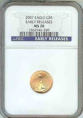2007 Gold US American Eagle $5 Dollar 1/10th Ounce ER Early Releases BU NGC MS70