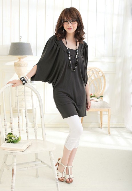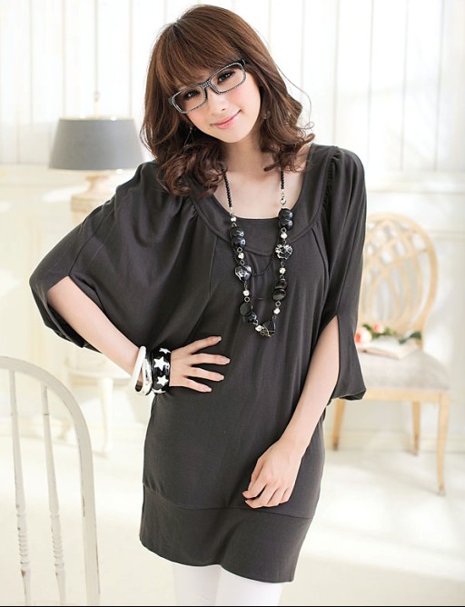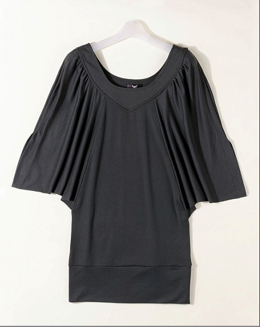 Plus Size Casual Bat-Shape-Sleeve Dress Deep Grey