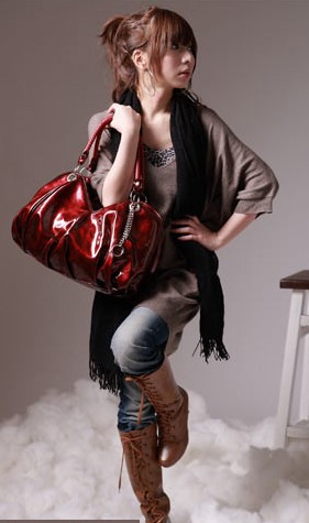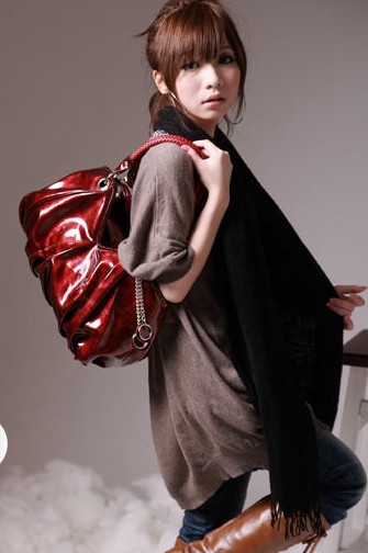 V Pattern Pleated Weaved Strap Dual-use Bag Red