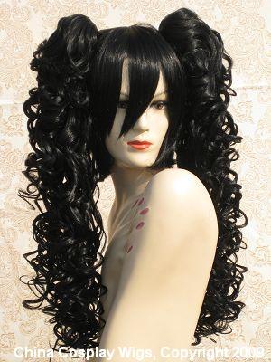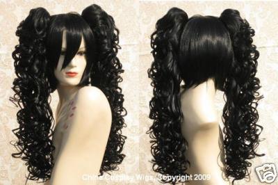 26" Black 2 clip Long curly ponytail COSPLAY wig wigs