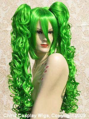 26" Light Green 2 clip curly ponytail COSPLAY hair wig
