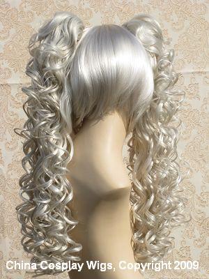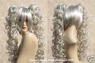 26" Silver grey 2 clip curly ponytail COSPLAY hair wig