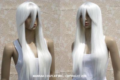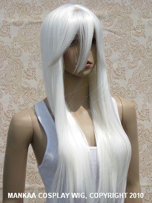 28" LONG BANG Str Silvery White COSPLAY hair wig wigs