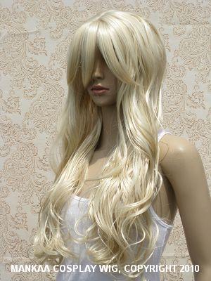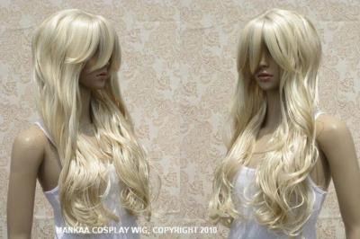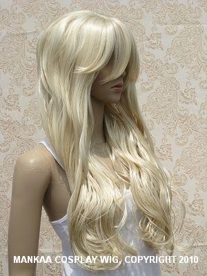 28" LONG wavy Pale Blonde BANG COSPLAY hair wig wigs