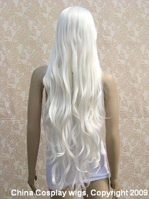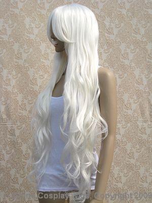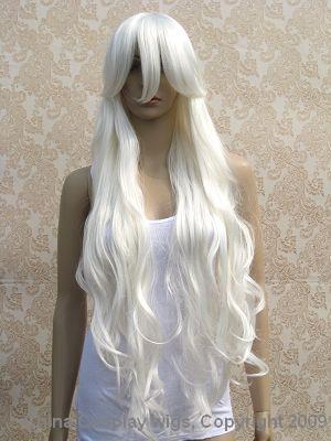 34" long wavy curly Silvery White bang cosplay hair wig
