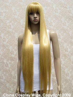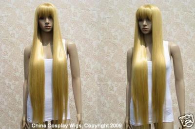 40" LONG BANG Str Golden Blonde COSPLAY hair wig wigs