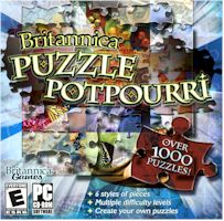 All the pieces you need for amazing fun! Britannica Puzzle Potpourri has over 1000 entertaining and challenging jigsaw puzzles made from stunning professional images. Choose from a range of categories--or create custom puzzles using your own pictures! The easy-to-use interface supports JPG, PNG, BMP, TGA, PCX, and more, without complicated importing. Just choose a photo from the browser, pick your preferences, and play! Change size, style, and thickness on the fly. Adjust shape, outline, oddness, and scale settings. Even select your favorite background color and add your own music. With so many incredible features, it's easy to create the perfect puzzle!Choose what you want... - 1000+ jigsaw puzzles