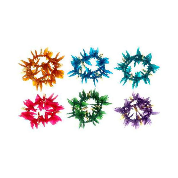 Hair Scrungies, assorted color acrylic bead hair scrungies. Also has maple leaf shaped beads and gold tone heart beads. Colors include: yellow, purple, red, blue, green and turquoise."" Case Pack 60 Please note: If there is a color/size/type option, the option closest to the image will be shipped (Or you may receive a random color/size/type).