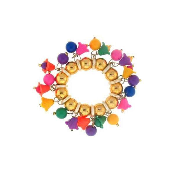 Hair scungies, multicolor and gold tone acrylic beads on elastic, with acrylic flowers."" Case Pack 60 Please note: If there is a color/size/type option, the option closest to the image will be shipped (Or you may receive a random color/size/type).
